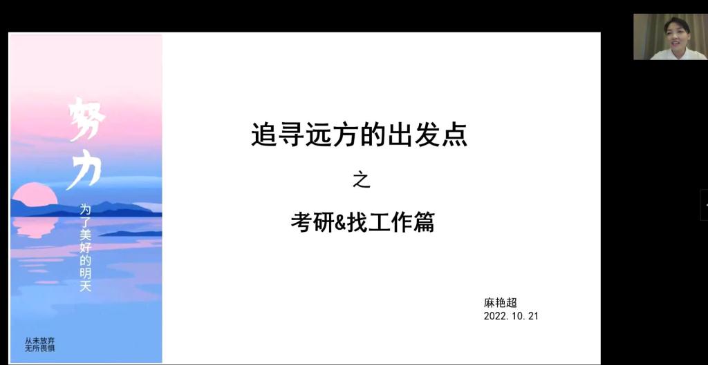 2011届生物技术专业优秀毕业生麻艳超,现任和瑞基因有限公司高级研发工程,以“考研和工作选择”为题,站在考研者角度进行讲述,分享考研经历与心得,号召同学们巩固学业,以考研作为未来工作的基础衔接点,使同学们对未来学业与工作的规划有了更深的了解;并结合自身就业选择实况,督促同学们重视考研,重视自身学习,坚持对学习锲而不舍的态度。