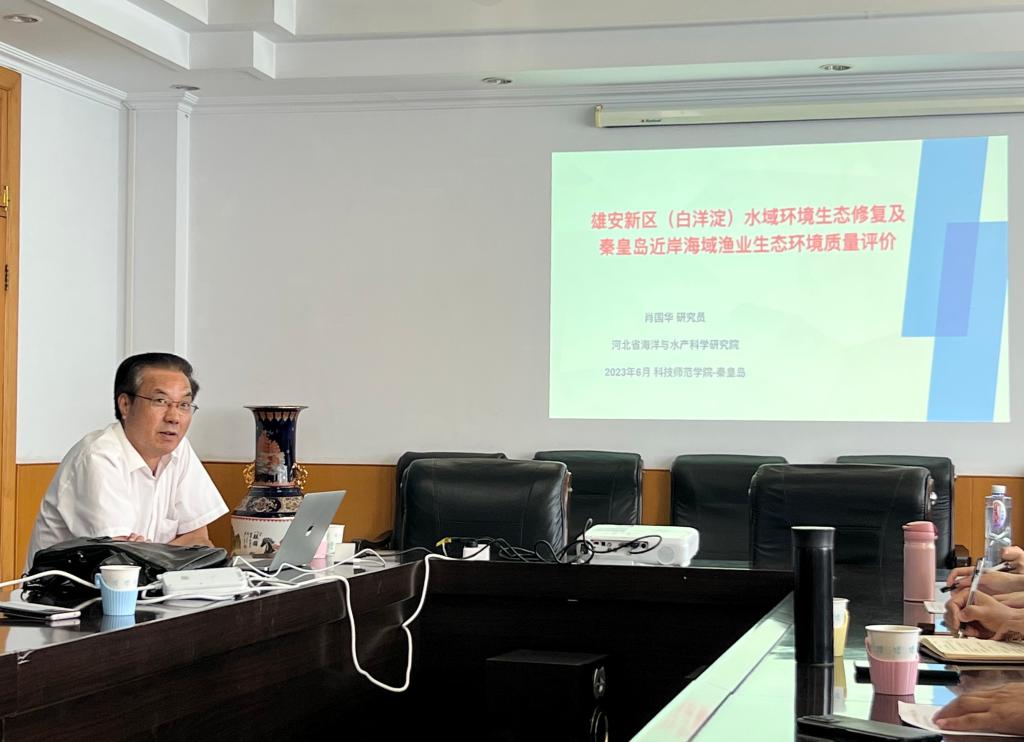 6月6日下午,河北省海洋与水产科学研究院肖国华研究员应邀为公司师生作题为《雄安新区(白洋淀)水域环境生态修复及秦皇岛近岸海域渔业生态环境质量评价》的学术报告。公司教师、渔业发展领域硕士研究生及水产养殖学、海洋资源开发技术和水族科学与技术等专业本科生40余人参与了本次报告,报告由海洋生物学学科带头人于姗姗博士主持。