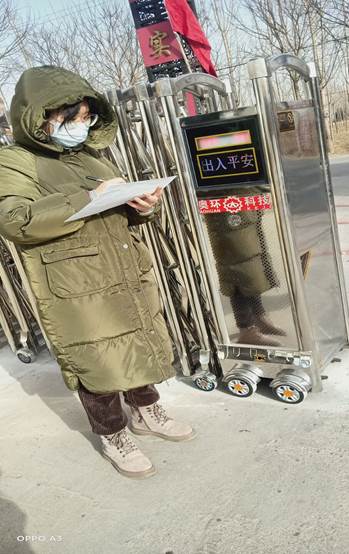 李蕾,生物科学专业2018级员工,2020年11月加入中国共产党,家住河北省任丘市郭家村。李蕾同学在去年武汉疫情爆发时就作为一名志愿者参与疫情防控工作,今年河北疫情形势严峻,她又义无反顾的加入志愿者的队伍。根据安排,她主要负责在村口执勤,对外来人员进行排查及体温检测,严格控制外地人员及车辆的进入,最大限度的限制人员流动,把牢“入口关”,作好村子的守护者。